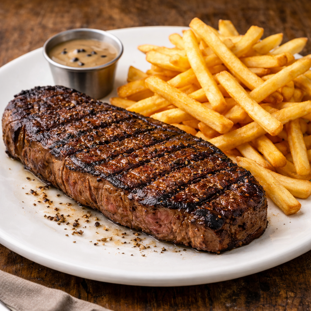 250gm Porterhouse, cooked to your liking, served with French fries + your choice of sauce.